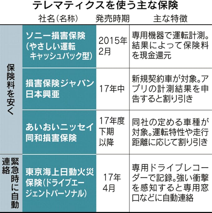 スマホで運転特性計測 テレマティクス 自動車保険 日本経済新聞